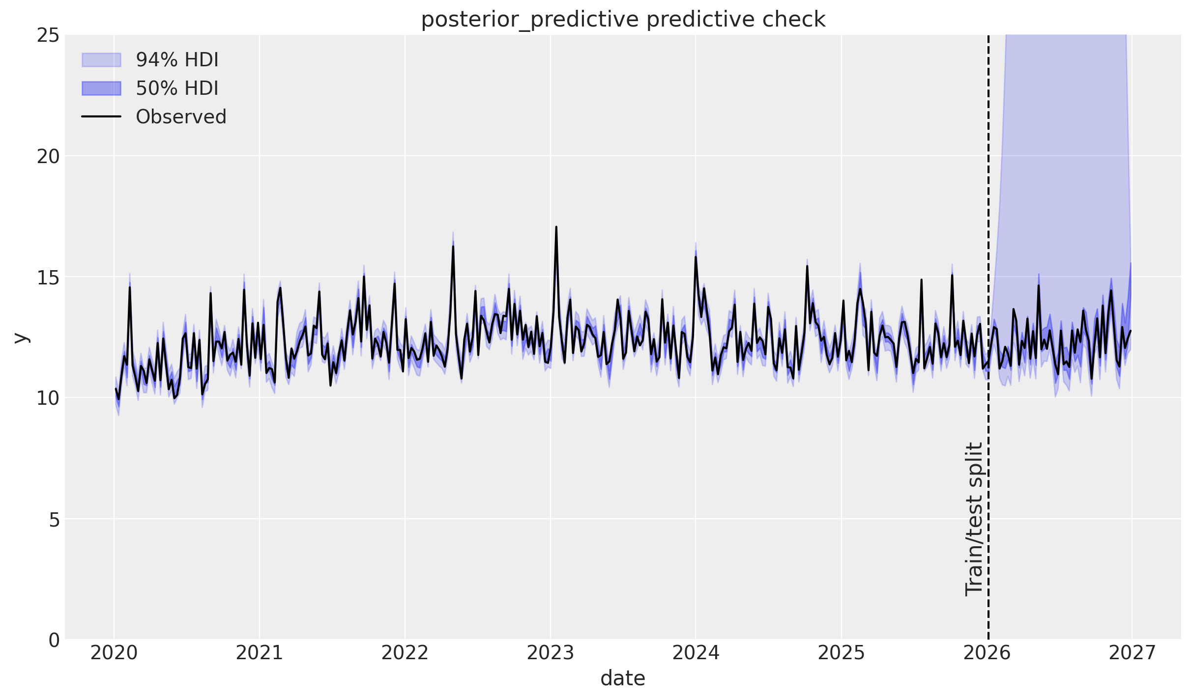 ax = plot_posterior_predictive(mmm_events, DATA["target_events"], label_y=5)